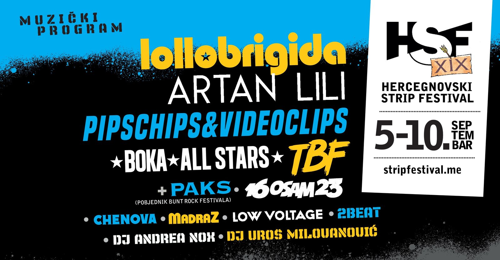 Zaokružen je detaljni program devetnaestog izdanja Hercegnovskog strip festivala (HSF) koji će se ove godine održati od 5. do 10. septembra na više lokacija u Herceg Novom i Boki Kotorskoj, ali i na Lovćenu jer se nastavlja saradnja sa sjajnim kompleksom Žičara Kotor – Lovćen. Izuzetno bogat šestodnevni program, pored tipično likovnih i stripovskih sadržaja, kao što su izložbe radova specijalnih gostiju, crtanje za fanove, radionice za sve uzraste, prezentacije i predavanja, podrazumijeva i veoma kvalitetan, pažljivo odabran, muzički repertoar svakog dana.
